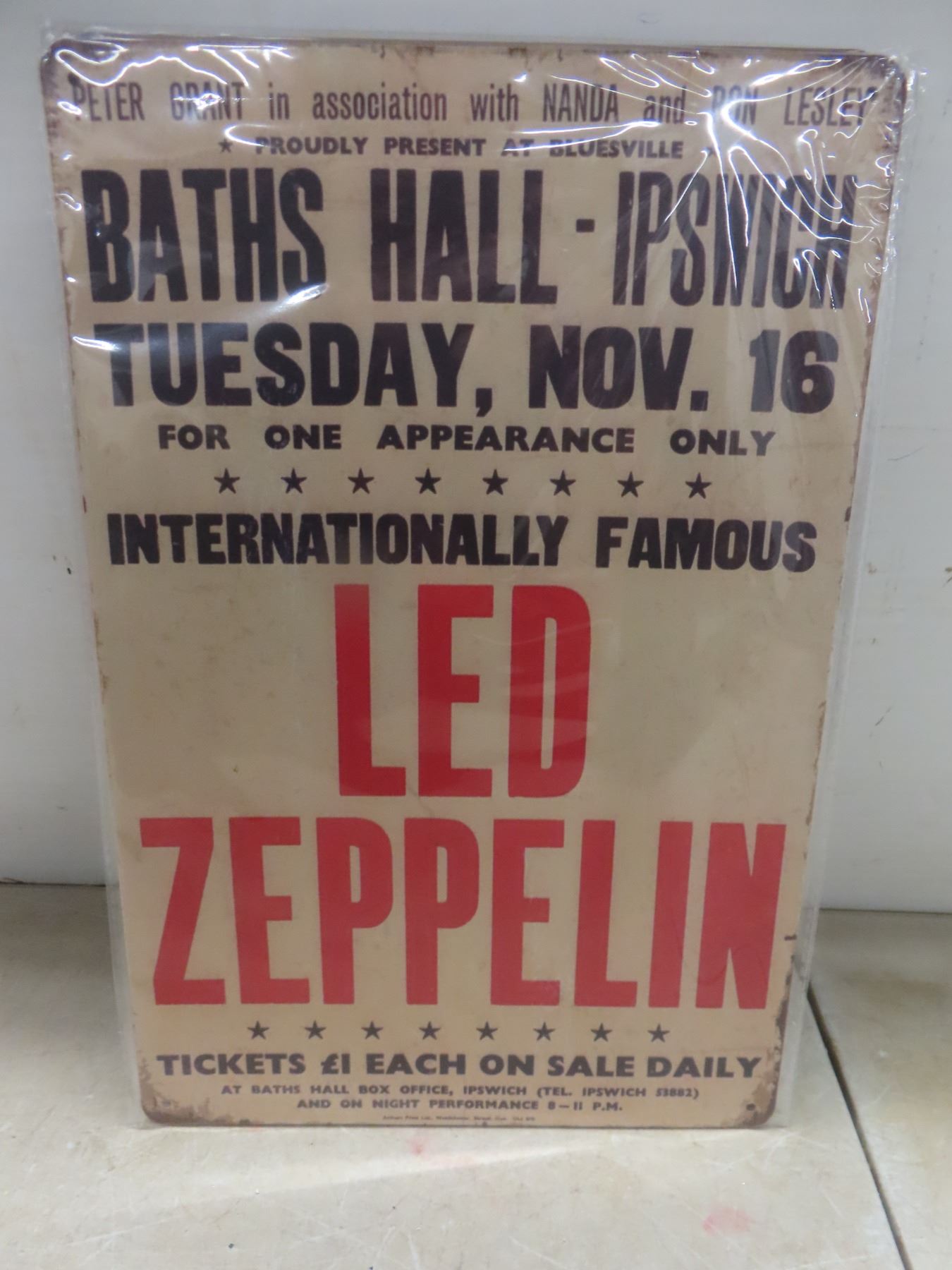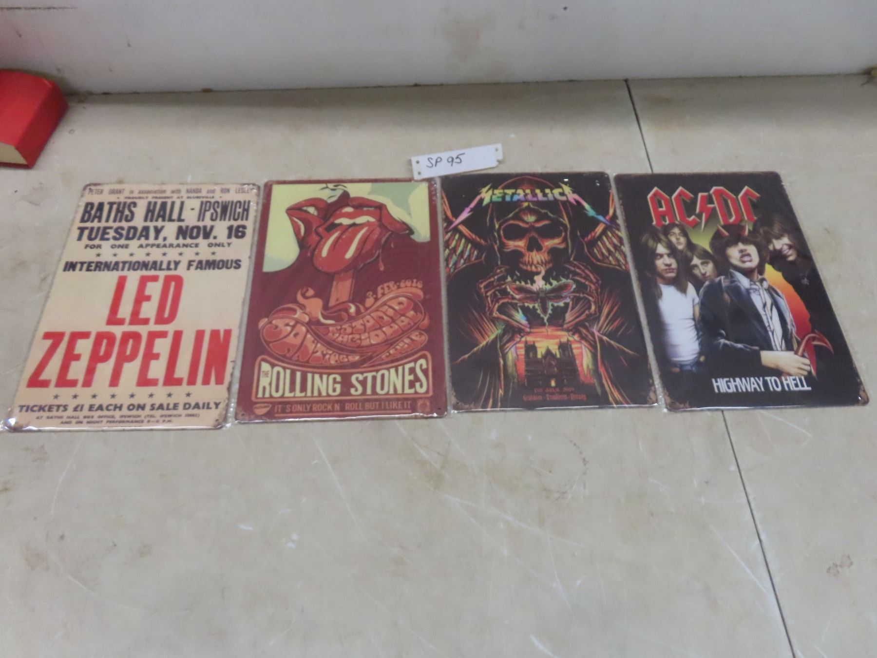 Four Modern Metal Signs: Led Zeppelin, Rolling Stones, AC/DC, and Metallica