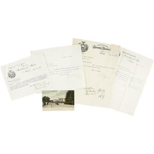 <B>Four New York Statesmen Typed Letters Signed</B></I> by Attorney J. J. Albright, January 12, 1903; Attorney General John C. Davies, December 17, 1900; Secretary of state John T. McDonough; Speaker S. F. Nixon, December 16, 1899. Expected folds, light aging, overall very good condition with three on official state letterheads. <BR><BR><b>Shipping:</b> Flat Material, Small (<a target="_blank" href="http://www.heritageauctions.com/common/shipping.php">view shipping information</a>