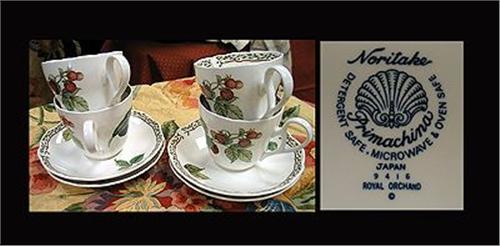 Four Noritake Royal Orchard Tea Cups with Saucers, no chips or cracks
