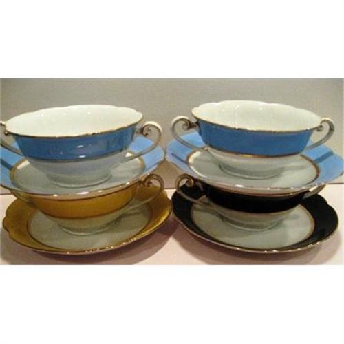 <tr><td>Title:Four Noritake Striped Cream Soups and Plates</td></tr>