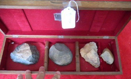Four Paleo Tools from San Diego County. Shipping $20.00. The items measure 3x4x1 for the largest. The smallest is 1x2 inches. Condition as found