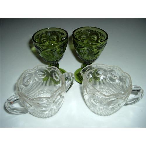 This Collection includes Two Wine Glasses and a Cream and Sugar. The Wine Glasses are 4-3/4" tall and hold 4 0z. The Cream and Sugar appear to be Earlier.