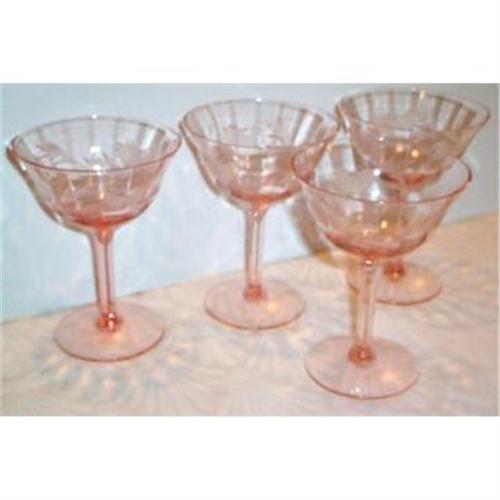 We are offering you four (4) lovely Pink Wheel Cut Optic Footed Elegant Depression Glass Sherbets all for one money. Each sherbet is decorated with a lovely floral pattern that has been wheel cut into the optic glass pattern. Each sherbet is in SUPERIOR condition with no chips, cracks, or dings and they each measure 3.50" in diameter and stand a very stately 5" tall.