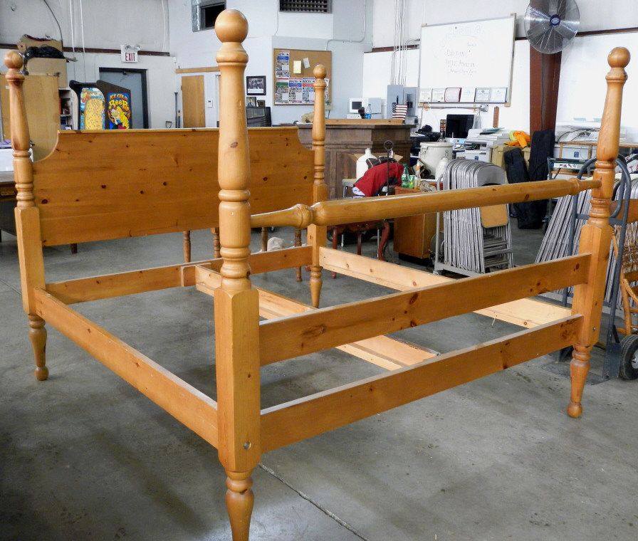 Four Post King Bed Frame - This piece is made of Pine Solid Wood and is in good condition. All the pieces are included even the center piece for a more stable straight bed.