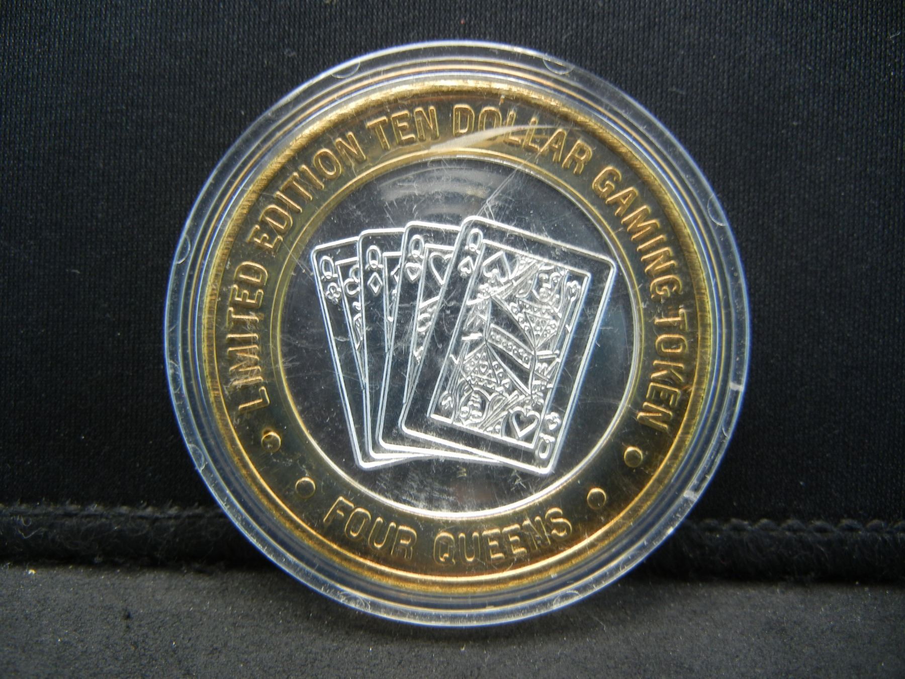Four Queens Las Vegas Nevada $10 (.999) silver gambling token. In capsule.