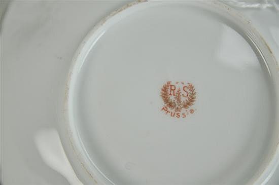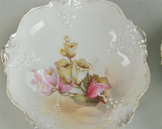 Four R.S. Prussia Berry Bowls, floral motif, red mark. 1 1/2in H, 5in Dia.