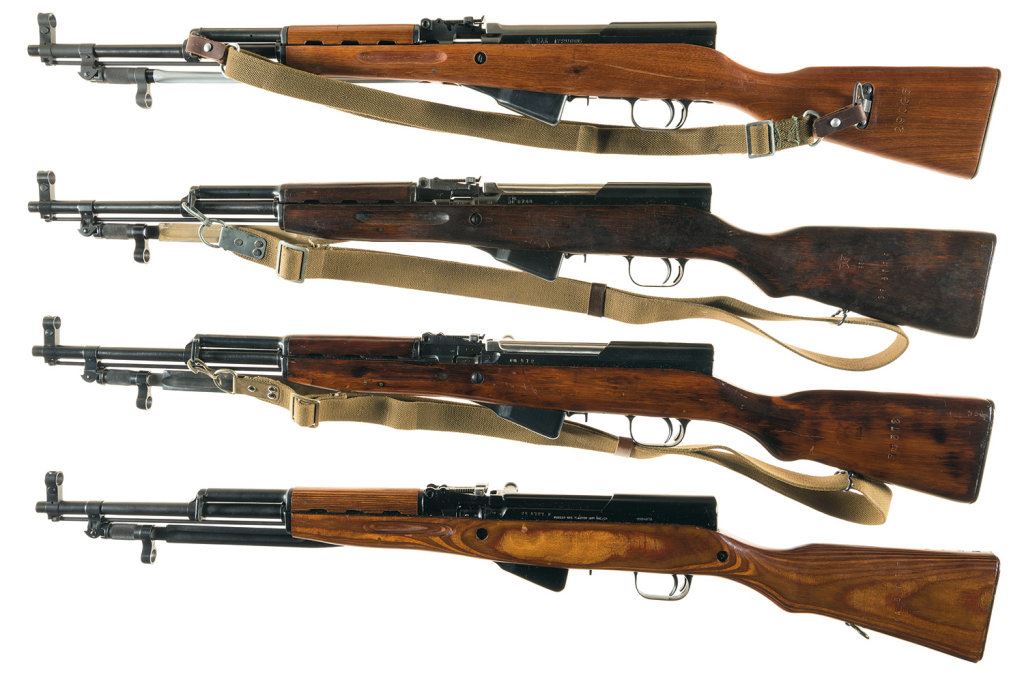 Four SKS Semi-Automatic Carbines with Bayonets -A) Chinese Type 56 SKS Carbine