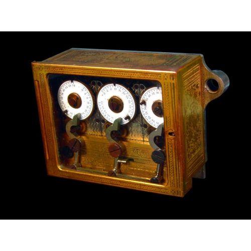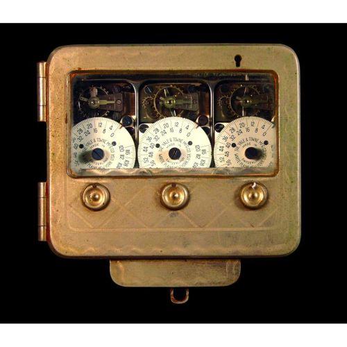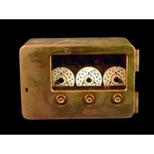 4 Safe Lock Time Clocks including 2 Yale and Towne Mfg. Co. a fancy Brass one and a Sargent Movement. All in Excellent Condition.