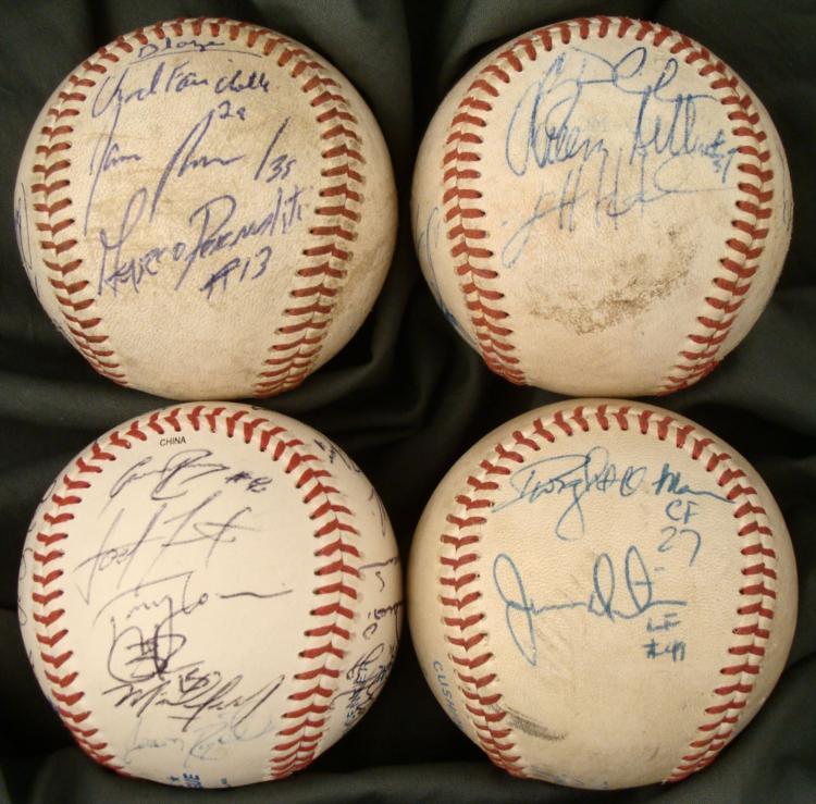 Offered here are four Califiornia League Baseball's from 1997. Each ball has several signatures on them, one ball has been signed by the entire team. Three of them are game balls and one of them is new.The California League is a Class A Advanced minor league baseball league which operates throughout the state of California and was founded in 1941. Before 2002, it was classified as a "High-A" league, indicating its status as a Class A league with the highest level of competition within that classification, and the fifth step between Rookie ball and the Major Leagues. Although Minor League Baseball, the umbrella organization for Minor Leagues that are affiliated with Major League Baseball, has eliminated the distinction between High-A and other full-season A leagues, most Major League teams still use such leagues as a standard promotion step. A few draftees, generally early-round draftees with college experience, will be assigned to a High-A team upon signing a professional contract, but generally players will not arrive at this level until their third or fourth year of professional play.