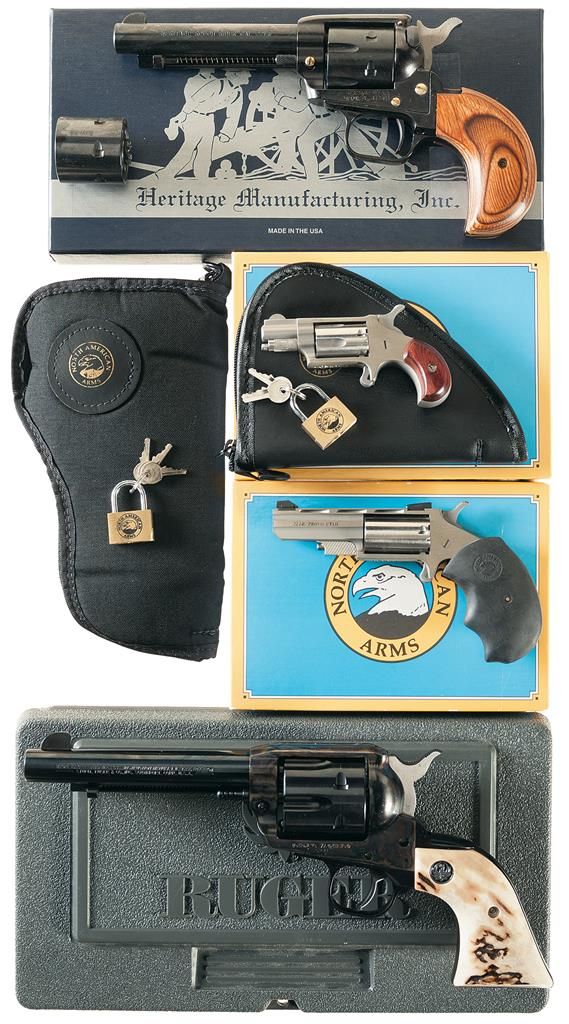 Four Single Action Revolvers -A) Heritage Rough Rider Revolver with Box and Combination .22 Mag Cyli