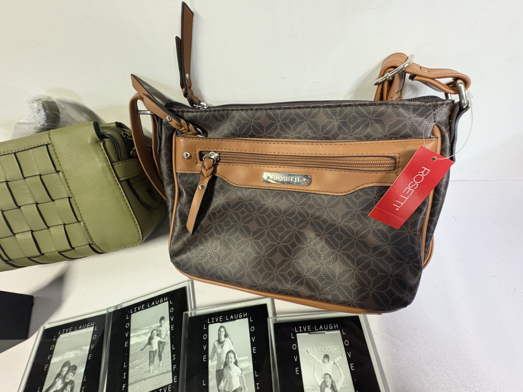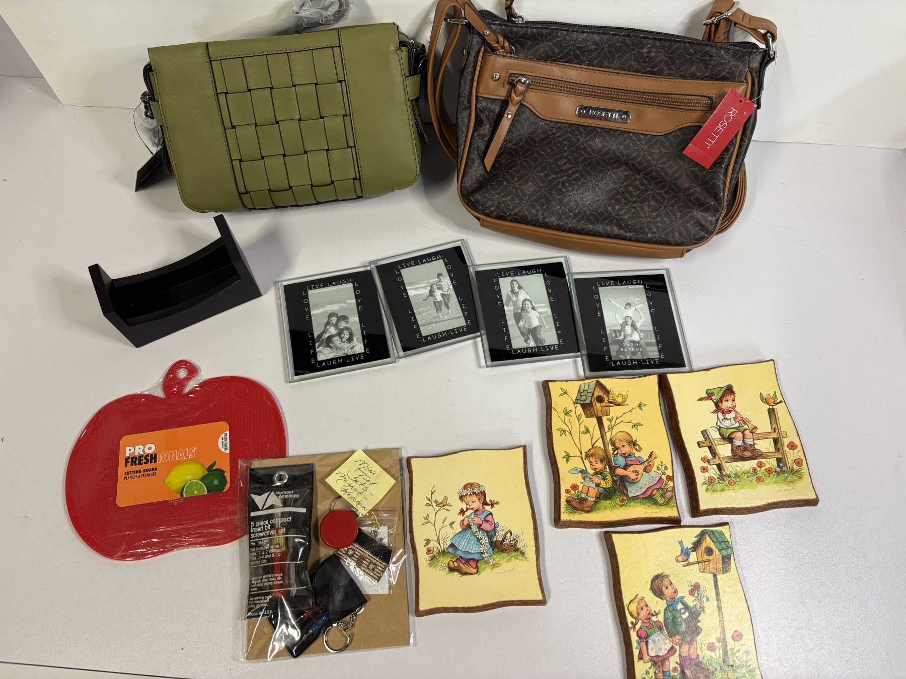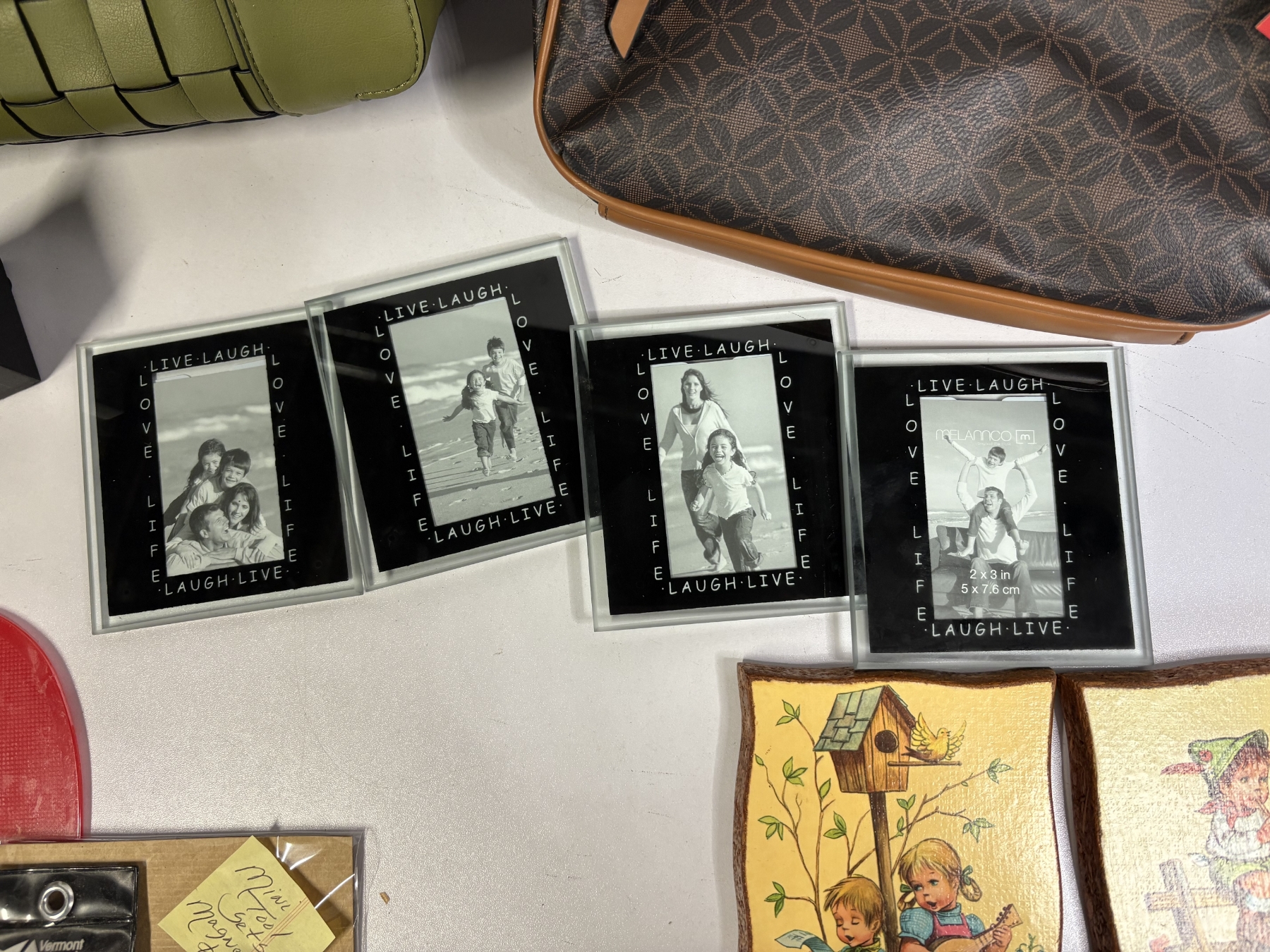 Four Small Frame - 2 Purses (1 Rosetti) - Pictures with Children & Birdhouses - Tool Magnet & Keychain Sets - Apple Shaped Cutting Board