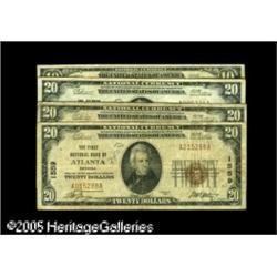 <B>Four Small Size Southern Nationals</B></I><BR>Atlanta, GA - $20 1929 Ty. 1 First NB Ch. #1559 Fine<BR>Birmingham, AL - $20 1929 Ty. 1 First NB Ch. #3185 Fine<BR>Jacksonville, FL - $20 1929 Ty. 1 Atlantic NB Ch. #6888 VF<BR>Savannah, GA - $10 1929 Ty. 2 Liberty NB & TC Ch. #13472 F-VF.<BR> 4 notes Lot:17027
