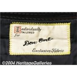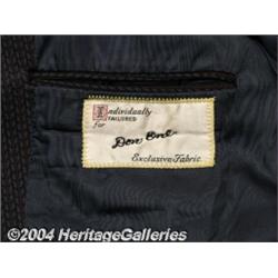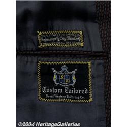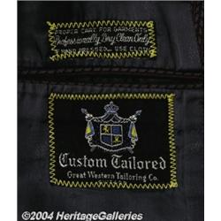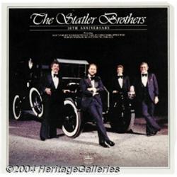 <B>Four Statler Brothers Outfits.</B></I> One of the most successful vocal groups in the history of country music, the Statlers achieved their notoriety while touring with Johnny Cash from 1963-1971. Known for their fine harmonies and consummate stage presence, they had a succession of hits during the '70s. In 1982, member Lew DeWitt died, but the group went on and had a long-running variety show on TNN. Four sets of two-piece suits include pants and jackets, especially designed for each member of the ever-popular Statler Brothers. Charcoal suits with maroon piping have their nicknames and the date, 1972, sewn into each outfit. Normal age wear in fine condition. Also included in this lot is the Polygram LP that pictures them in these suits, plus an unsigned 8" x 10" black and white photo of the group. <BR><BR><B>Important notice:</B> Heritage usually auctions material at the rate of 200-250 lots per hour. On some occasions eBay Live bid software or the Internet may not be able to keep up with the pace of the auction. We recommend placing a realistic absentee bid now as insurance to avoid disappointment. Occasionally the auctioneer may eliminate or reject an eBay Live bid, and the auctioneer may also reopen a lot after the close of the eBay live bidding (usually because we missed an audience bid), and may reject your bid even if it shows you as the winning bidder. By bidding via eBay Live, you agree that Heritage may award the lot to another bidder at its sole discretion under the circumstances described above or any other reasonable circumstances. Since eBay bids are not shown to us until we open the lot on the floor, we treat those bids just like floor bids. In most cases the floor responds before the eBay bid is presented to us, due to Internet lag time, so for consistency we have made it a policy that floor bids are always considered first over tie eBay live bids. Also please note that all Heritage lots purchased through eBay Live carry a 24.5% Buyer's Premium. Please make sure you read the Terms and Conditions before you bid.