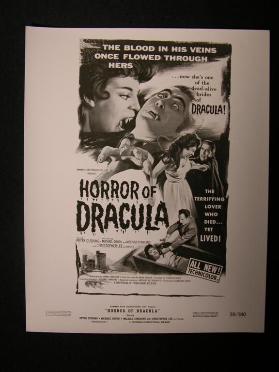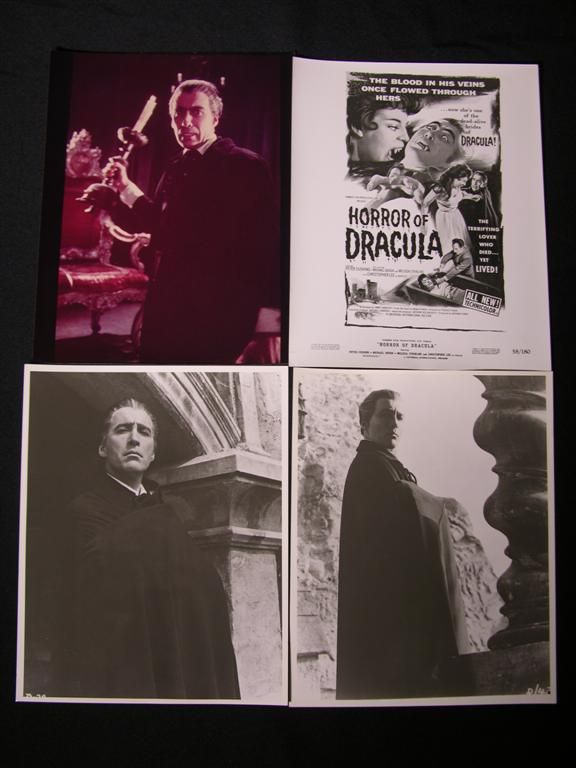 Set of four stills from Hammer's Horror of Dracula, three being in black and white and the other being in color. These depict Christopher Lee in a number of iconic poses. (8x10 each)