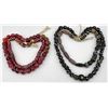 Four Strands of African Venetian Trade Beads. 4 Necklaces With Black And Red Polka Dot/Feather Beads. 236.4g. Red Tubular Bead Strand Largest Bead Diameter 9.58mm, Smallest 9.39mm. Spherical Red Bead Strand Largest Bead Diameter 12.38mm, Smallest 10.92mm. Strand With Feather Beads Smallest Diameter Bead 8.58mm, Largest 13.11mm. Black Polka Dot Bead Strand Largest Bead Diameter 16mm, Smallest 6.85mm. Shortest Strand 11 in. long. Longest Strand 18.5 in. long. All measurements are approximate.