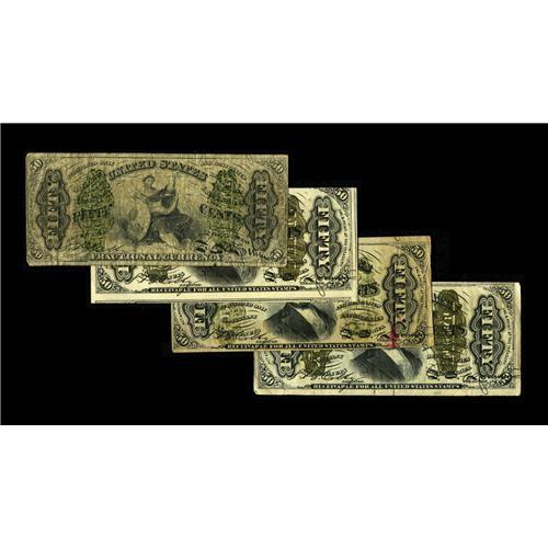 Four Third Issue 50c Notes. Three are Fr. 1331: an off-
