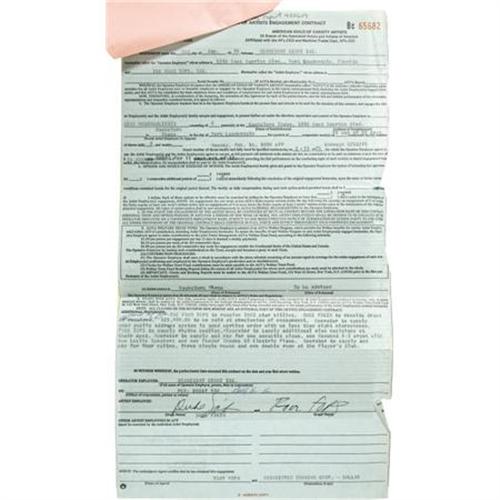 <B>Four Tops Signed Contract.</B></I> A booking contract dated February 4, 1976, engaging the Tops for a show in Fort Lauderdale, signed by Duke Fakir on the front page in blue ink and in Very Fine to Excellent condition. <I>From the Tony Papa Archives</B></I>. <BR><BR><b>Shipping:</b> Flat Material, Small (<a target="_blank" href="http://www.heritageauctions.com/common/shipping.php">view shipping information</a>)
