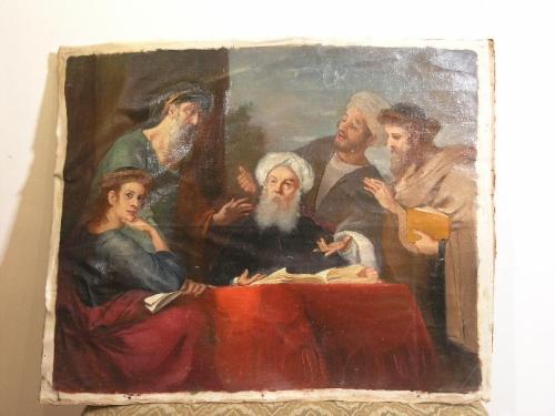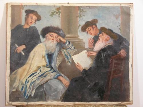 Szantho, Maria (Hungary 1902-1992) Talmud Students, /s/ l.l., good condition, 26" by 32"; Szantho, Maria (Hungary 1902-1992)Talmud Students, /s/ l.r., good condition, 26" by 32"; Szantho, Maria (Hungary 1902-1992) Rabbi Blessing a Boy, /s/ l.r., good condition, 33" by 26"; Behmel. Rabbi, /s/ l.r., good condition, 32" by 24"