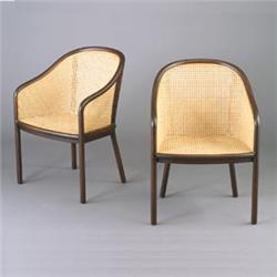 Four WARD BENNET for BRICKNEL armchairs with cane seats and backs on bentwood mahogany frames, (showing two). Unmarked. 33" x 23" x 18" $200 - 400