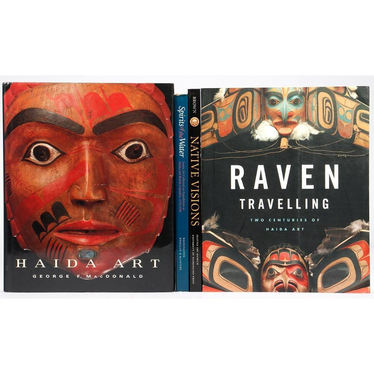 Four books on Northwest Coast art. 1.) AUGAITIS, DAINA, et al. Raven Travelling, Two Centuries of Haida Art. Vancouver/Toronto: Douglas & McIntyre, n.d. 2.) BROWN, STEVEN C. Native Visions, Evolution in Northwest Coast Art from the Eighteenth through the Twentieth Century. Seattle and London: The Seattle Art Museum/University of Washington Press, 1998. 3.) CABELLO, PAZ, et al. Spirits of the Water, Native Art Collected on Expeditions to Alaska and British Columbia, 1774-1910. Seattle: University of Washington Press; Vancouver/Toronto: Douglas & McIntyre, 2000. 4.) MacDONALD, GEORGE F. Haida Art. Craftsman House/G+B Arts International, 1996. Condition: Good-Very Good; the volumes are from a well-used research library; some light toning; some with owner's signature.