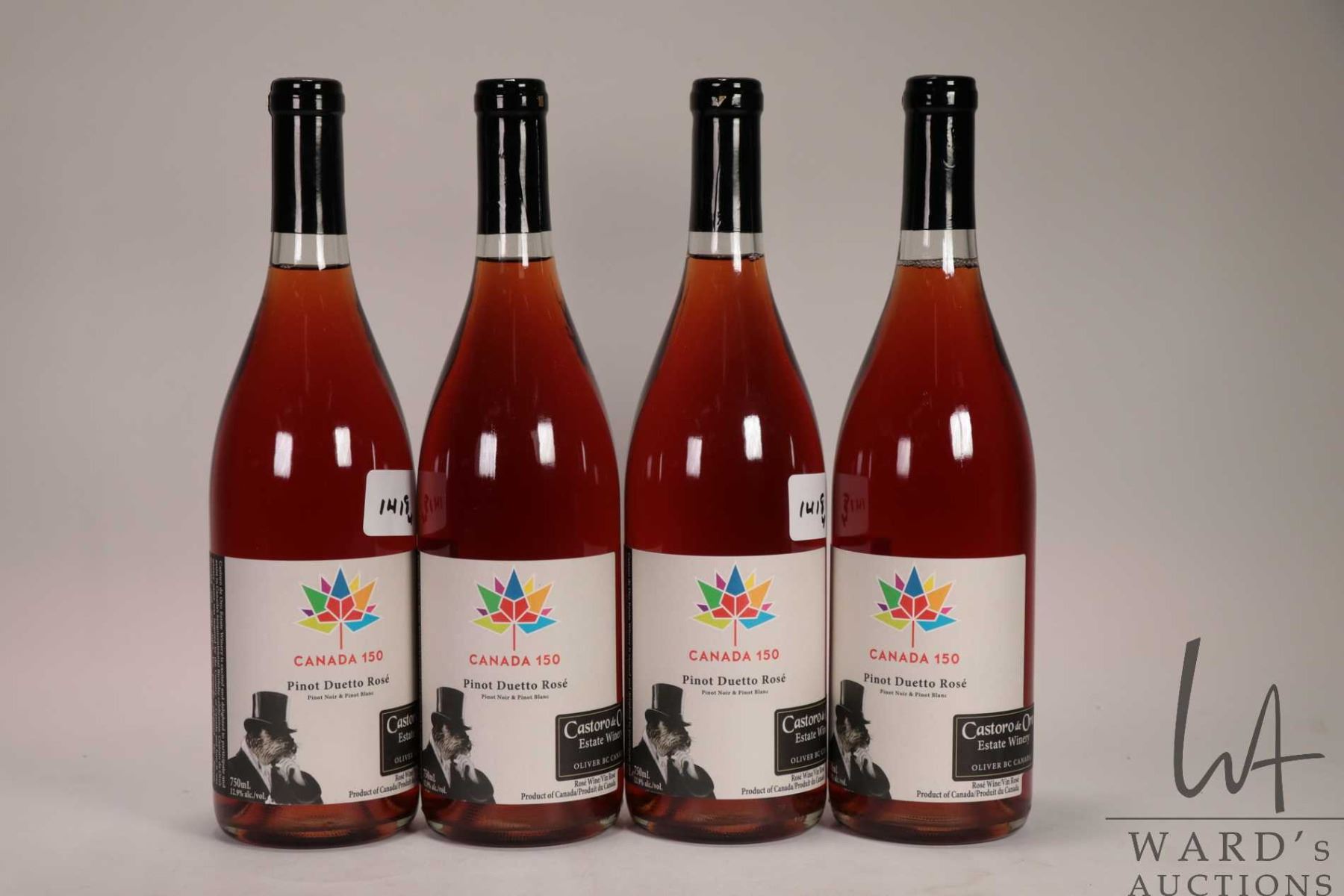 Four bottles Castoro de Oro/ Canada 150/ Pinot Duetto Rose/ 750ml/ 12.9% ABv Note: Alcohol cannot be insured by any courier in Canada. Local pick up is recommended. Canadian bidders only