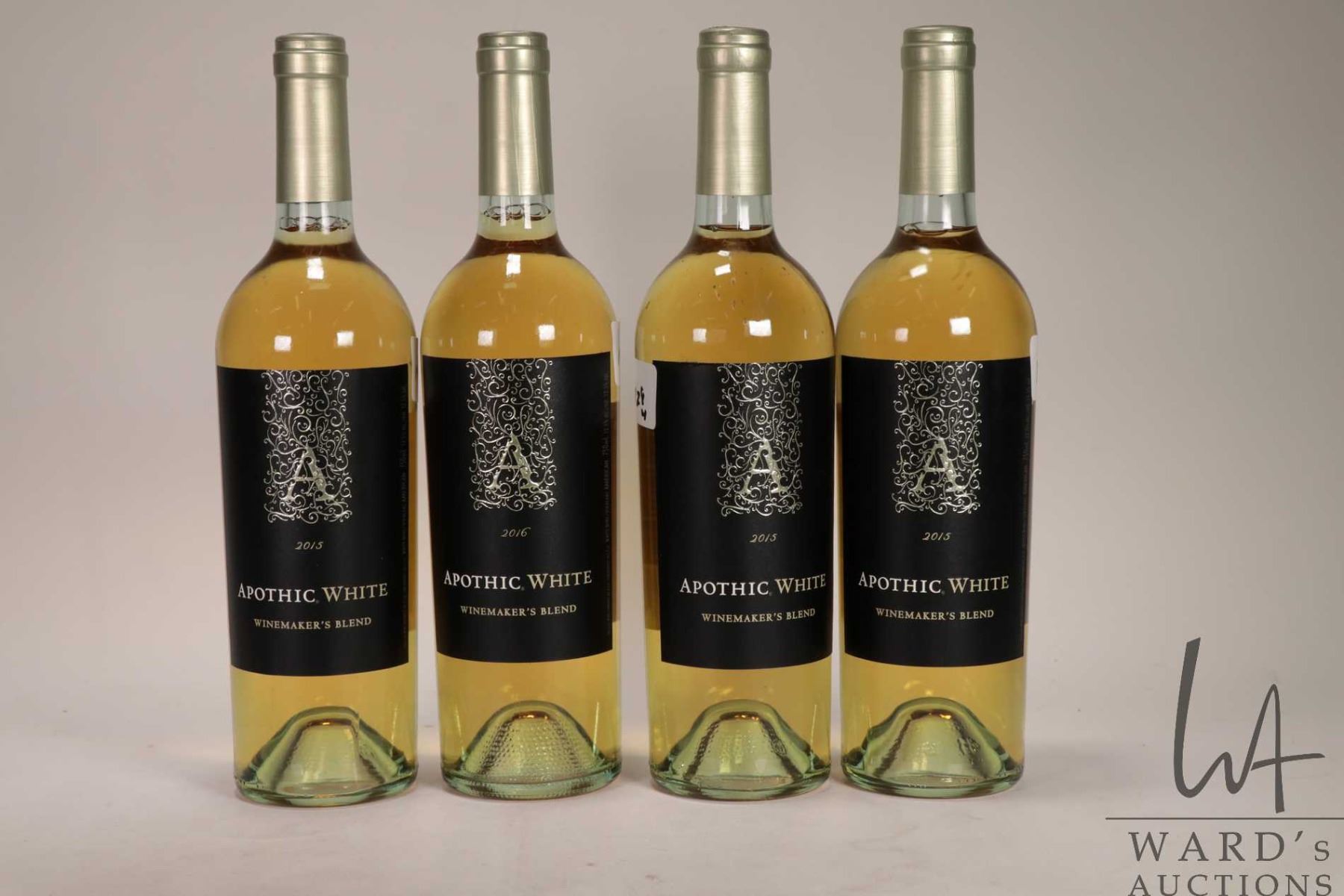 Four bottles of Apothic White/Winemaker's Apothic White/ including three bottles of 2015 and one bottle of 2016/ each 750ml/ 12.5% ABV Note: Alcohol cannot be insured by any courier in Canada. Local pick up is recommended. Canadian bidders only