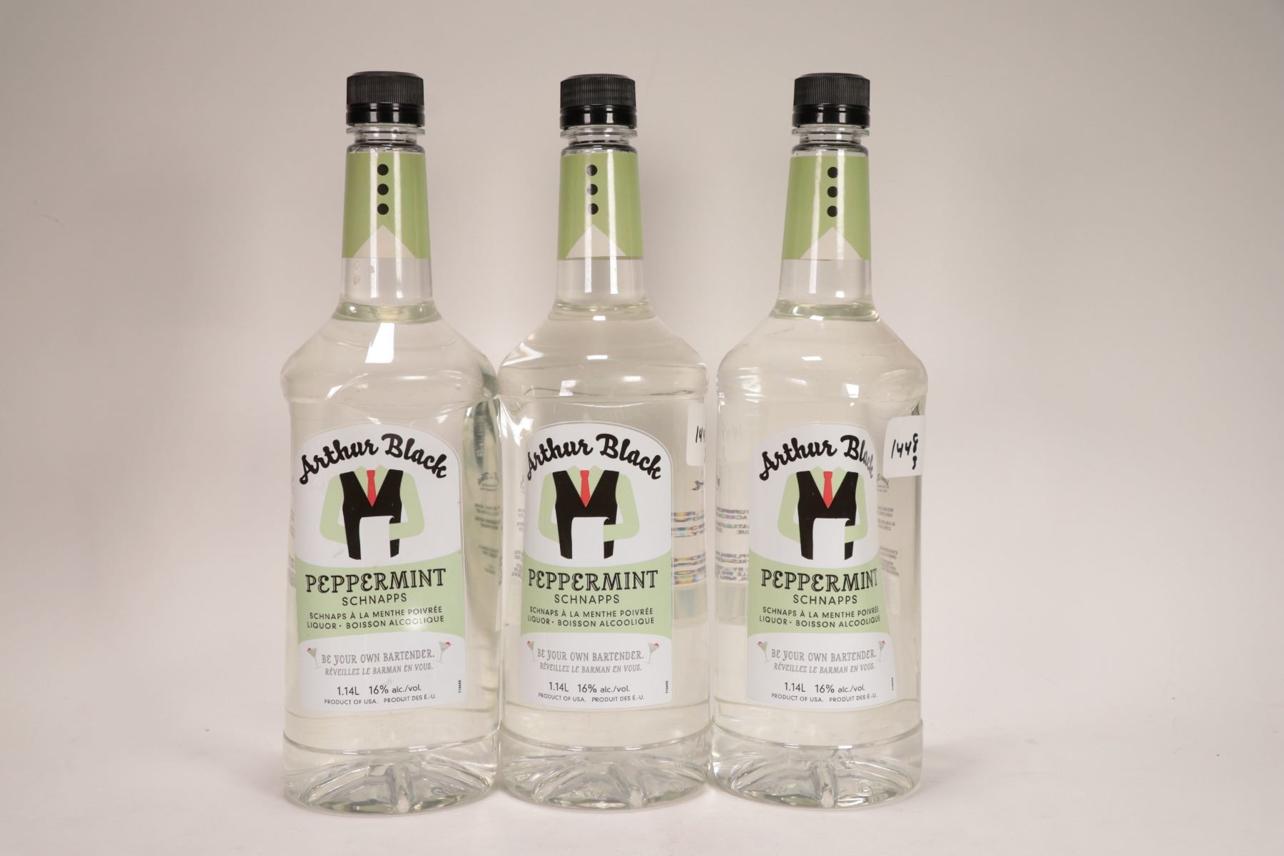 Four bottles of Arthur Blacks/ Peppermint Schnapps/ 1.14 ltrs./ 16% ABV Note: Alcohol cannot be insured by any courier in Canada. Local pick up is recommended. Canadian bidders only