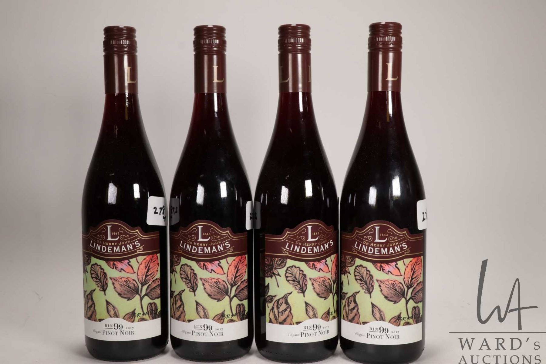 Four bottles of Lindeman's / Bin 99 / Pinot Noir / 750ml / 13.5% ABV Note: Alcohol cannot be insured