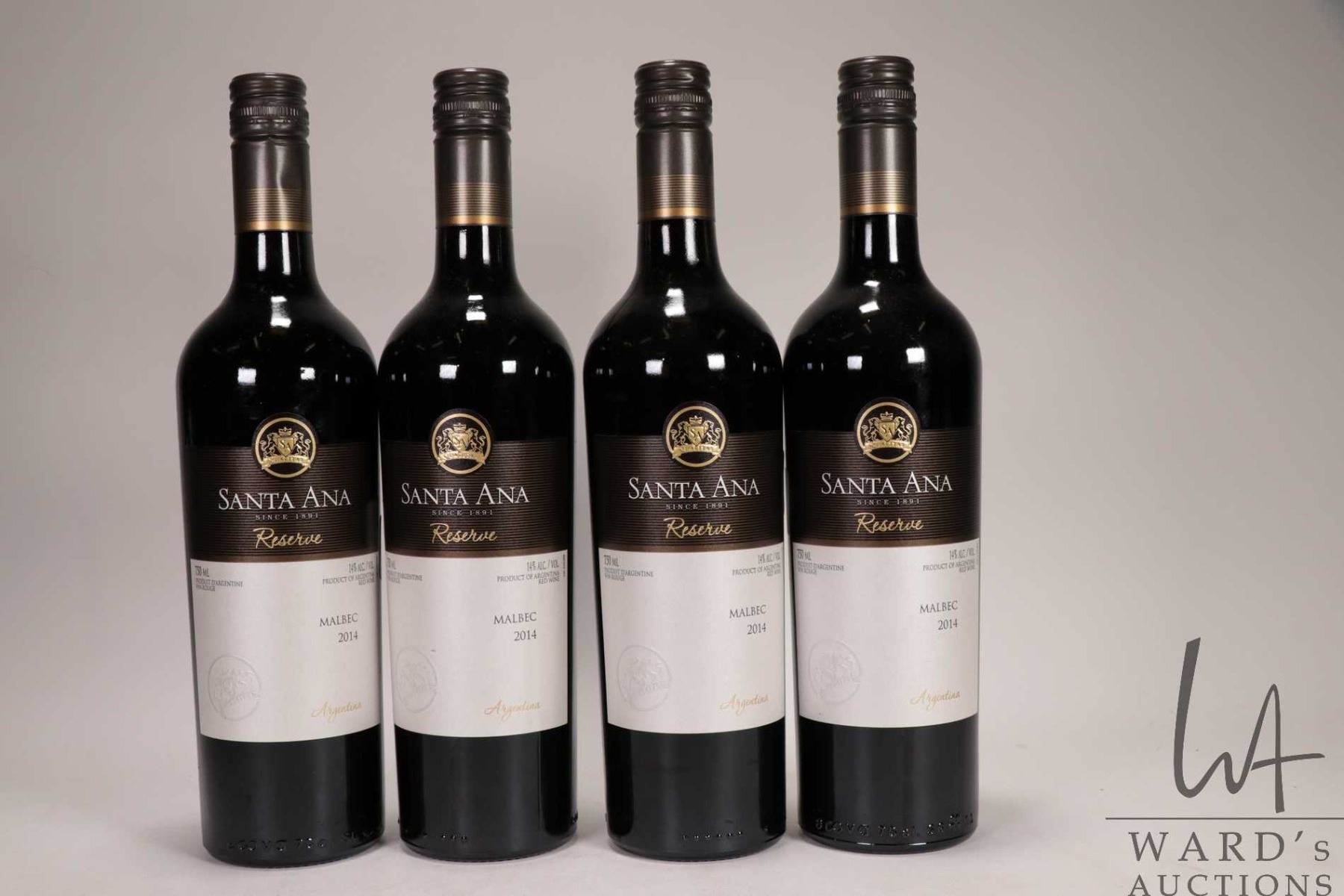 Four bottles of Santa Ana/ 2014 Malbec/ 750ml/ 14% ABV Note: Alcohol cannot be insured by any courie