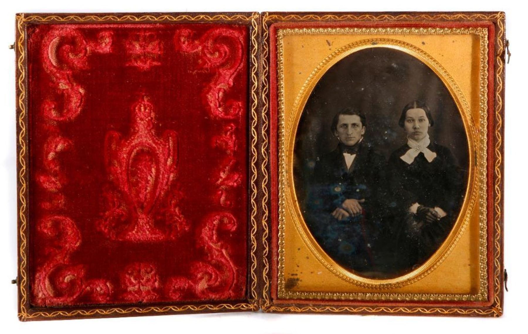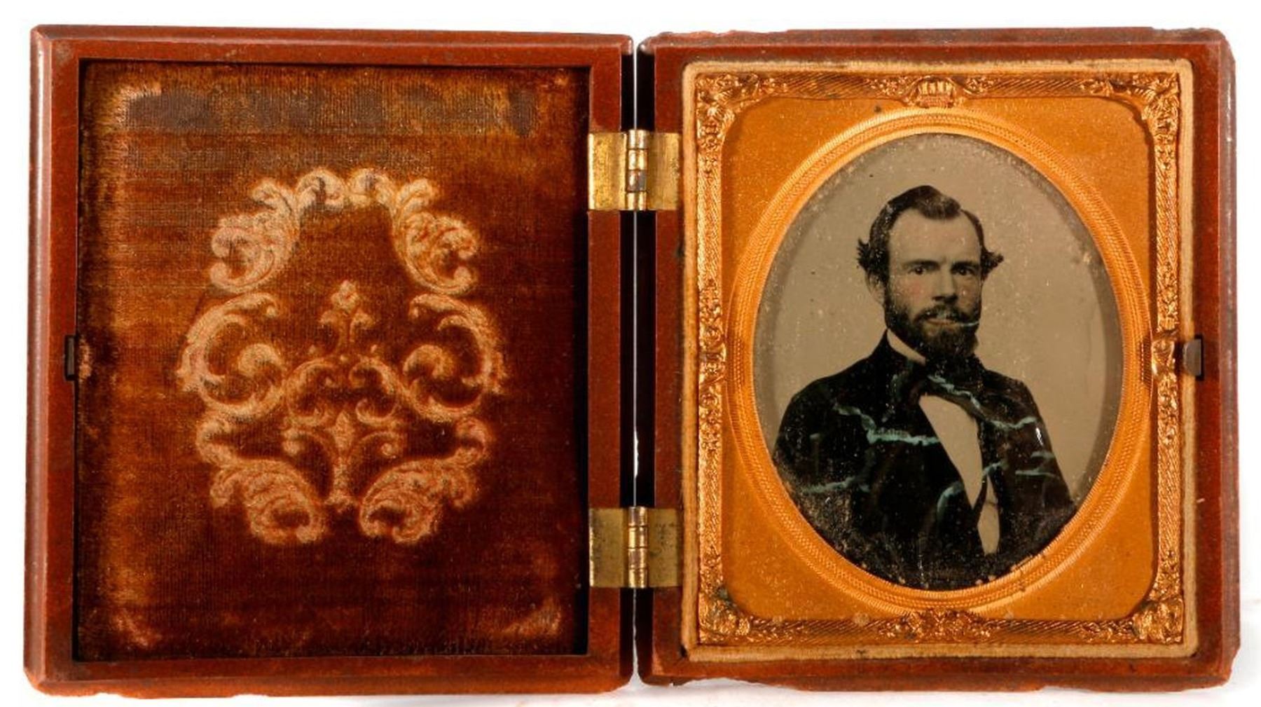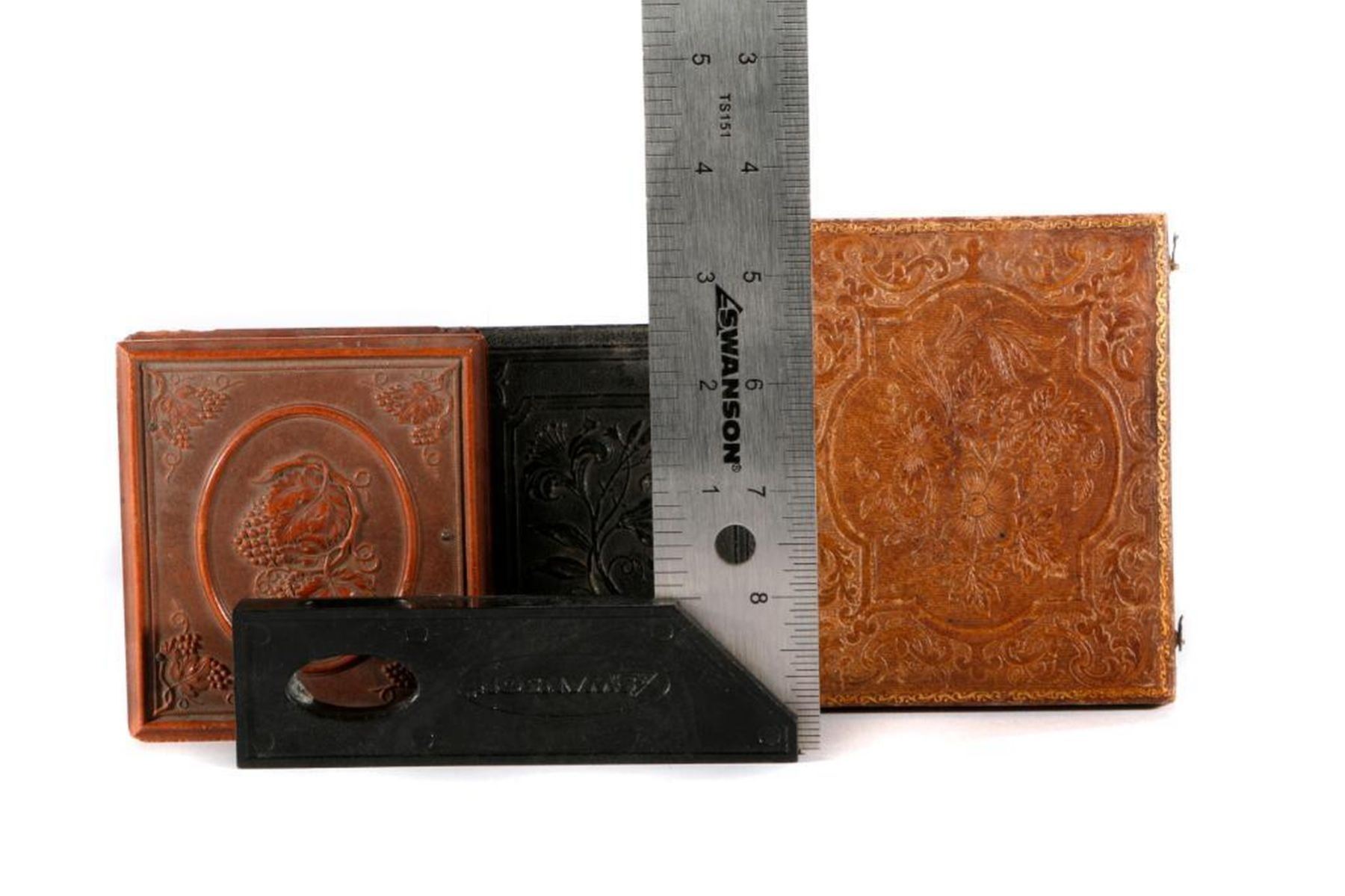 Four 19th century box framed daguerreotype/tintypes the largest measuring 5 inches high x 4.