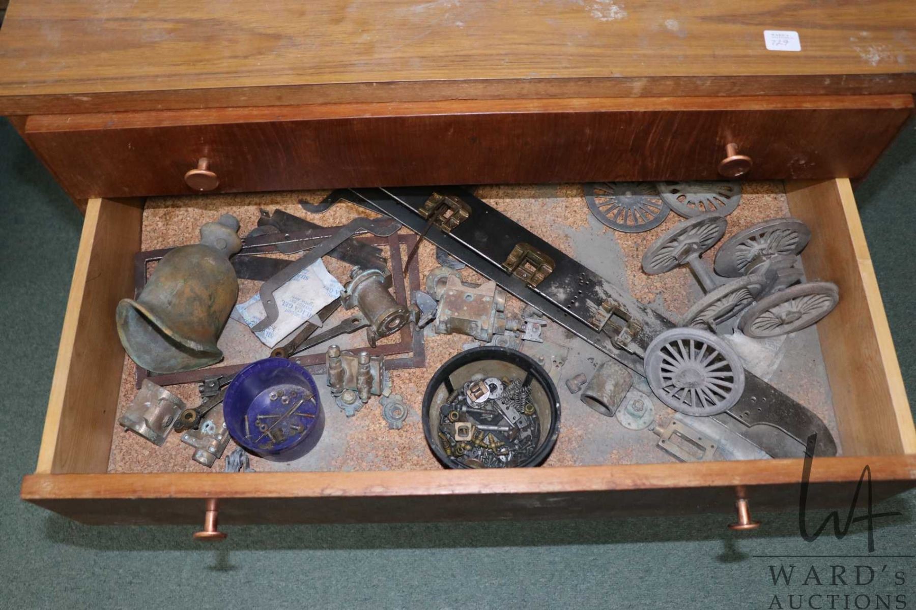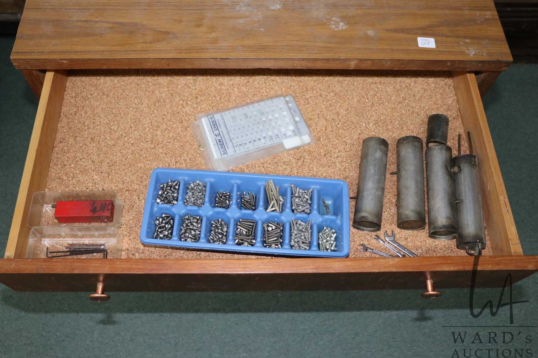 Four drawer chest containing steam engine parts and accessories plus a large assortment of small screws and springs etc.