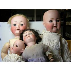 Four early 20th century bisque headed dolls, to include: a number 5 doll, 53cm tall, a Porzellanfabrik-Burggrub number 169 special-12 doll, 62cm high, another doll, 59cm high and an Armand Marseille 370 doll, 46cm high, all with sleepy eyes and open mouths and having some clothes (4) £200-300