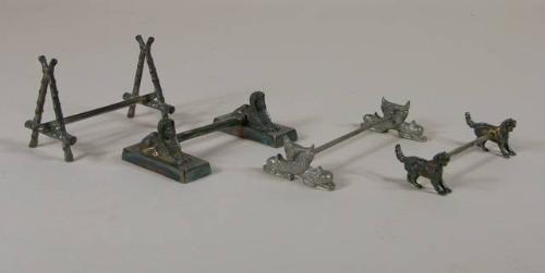 Four knife rests, one log design, one spinx, one dolphin, one dog. Good Cond.
