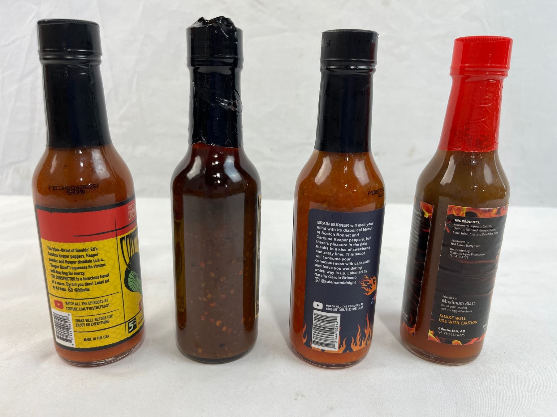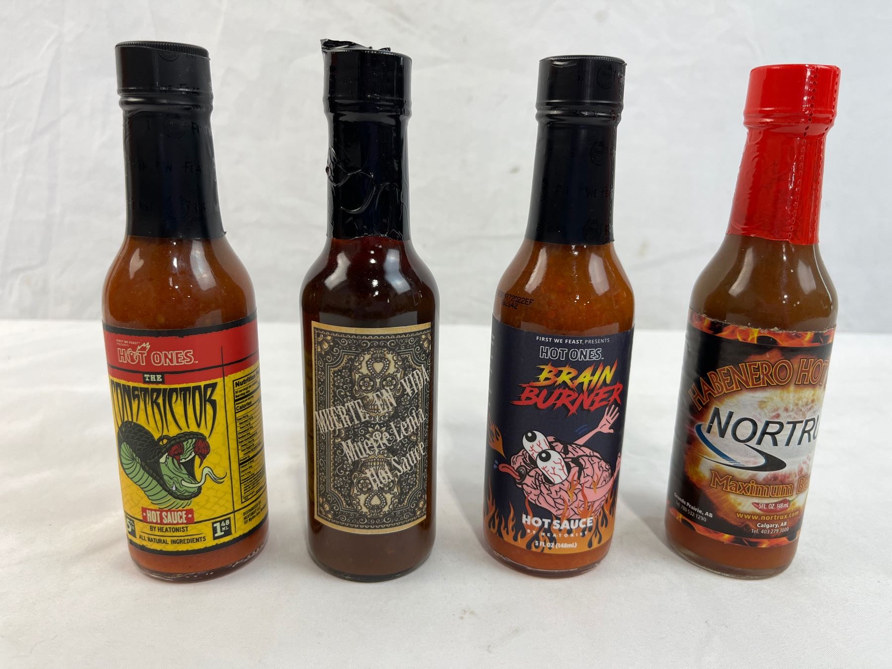 Nortrux Habenero hot sauce 5oz, muerte en vida 5oz, constrictor 5oz, and brain burner 5oz.