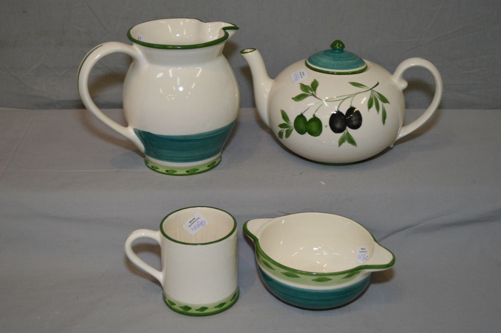 Four pieces of Obrarte pottery including tea pot, mug, pitcher and double handled bowl