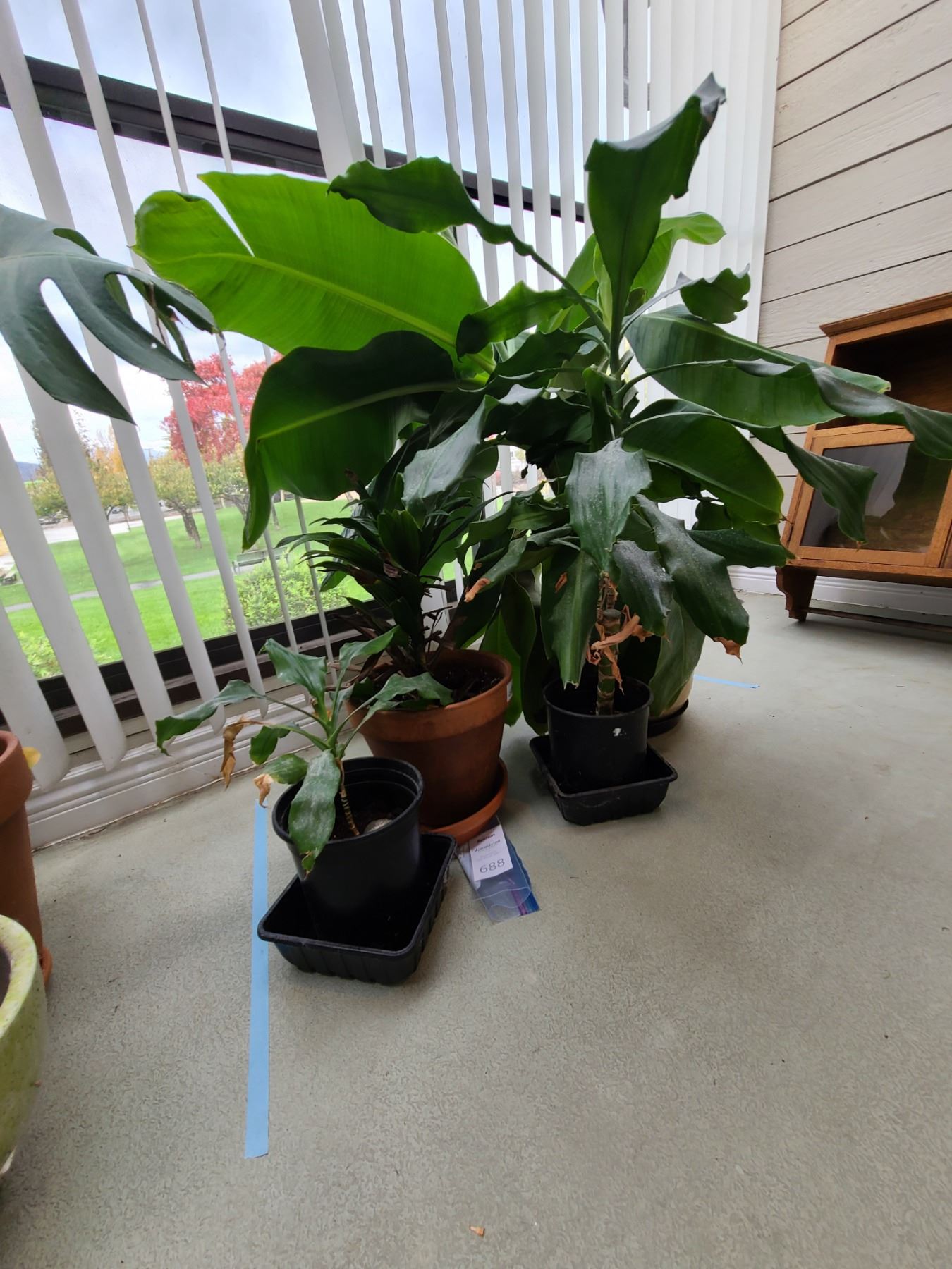 Four plants in containers, two medium and two small. Pickup at 9 am.
