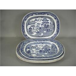 Four pottery Willow pattern meat plates, 45 and 38cm long Est. 150/200
