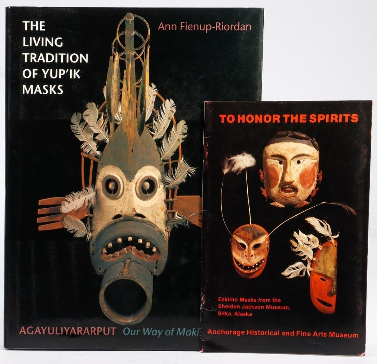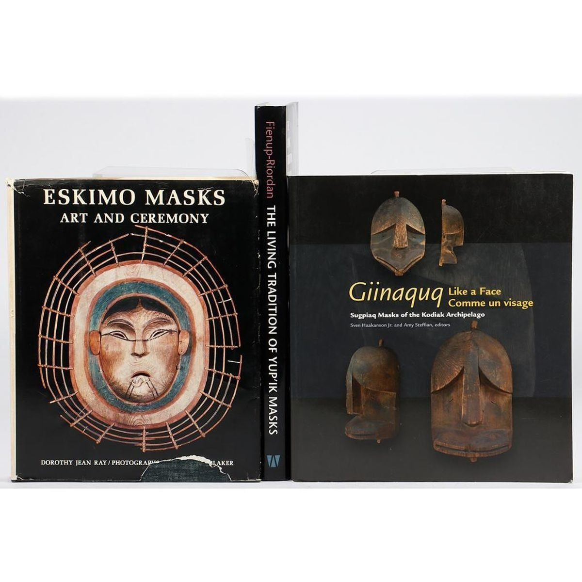 Four references on Eskimo masks. 1.) SHALKOP, R. L., and WALTER A. VAN HORN. To Honor the Spirits, Eskimo Masks from the Sheldon Jackson Museum, Sitka, Alaska. Catalog. Anchorage Historical and Fine Arts Museum, 1980. 2.) RAY, DOROTHY JEAN. Eskimo Masks, Art and Ceremony. Seattle and London: University of Washington Press, 1967. Large tear/loss bottom of dust jacket. 3.) FIENUP-RIORDAN, ANN. The Living Tradition of Yup'ik Masks, Agayuliyararput Our Way of Making Prayer. 4.) HAAKANSON, SVEN, and AMY STEFFIAN [ED.]. Giinaquq, Like a Face/Comme un visage, Sugpiaq Masks of the Kodiak Archipelago. Fairbanks: University of Alaska Press, 2009. Signed by Haakanson. Condition: Good-Very Good; the volumes are from a well-used research library; some light toning; two with owner's signature.