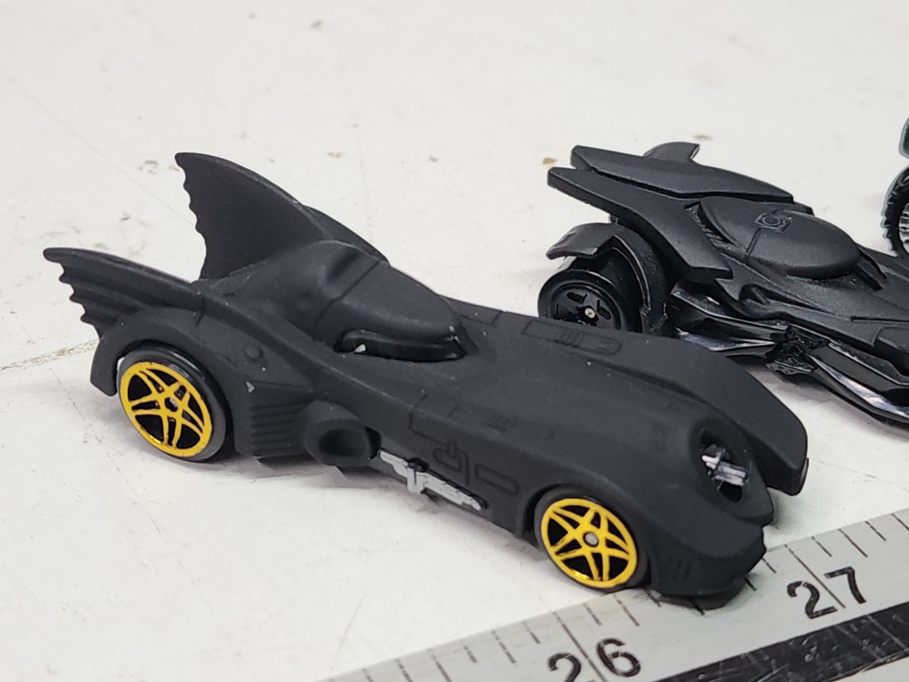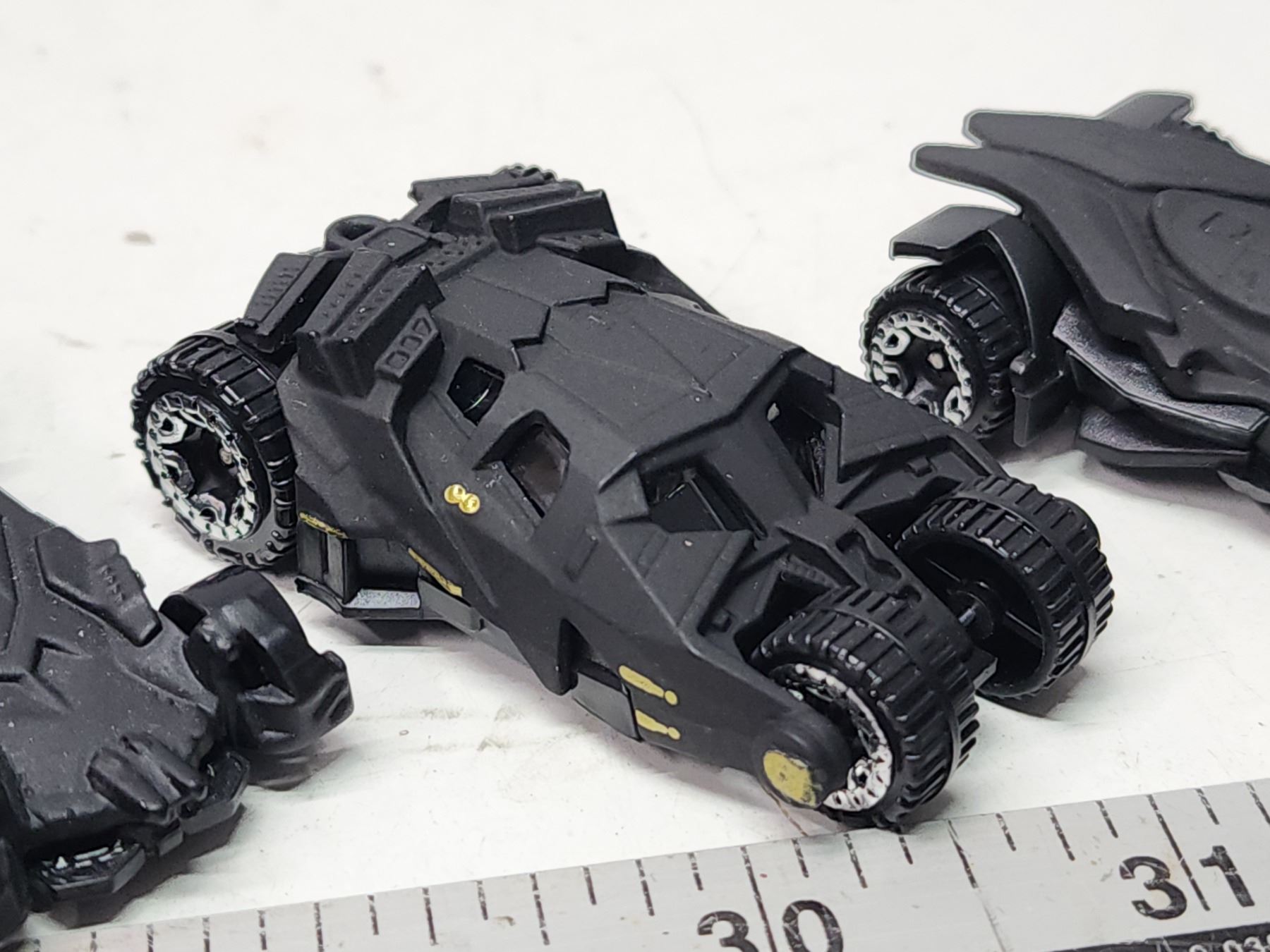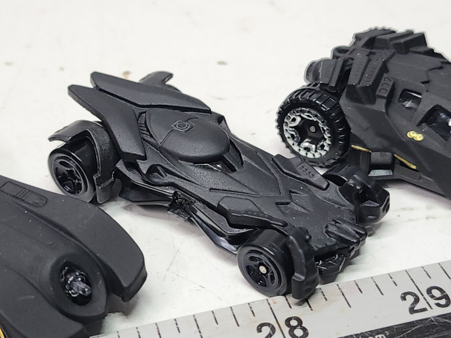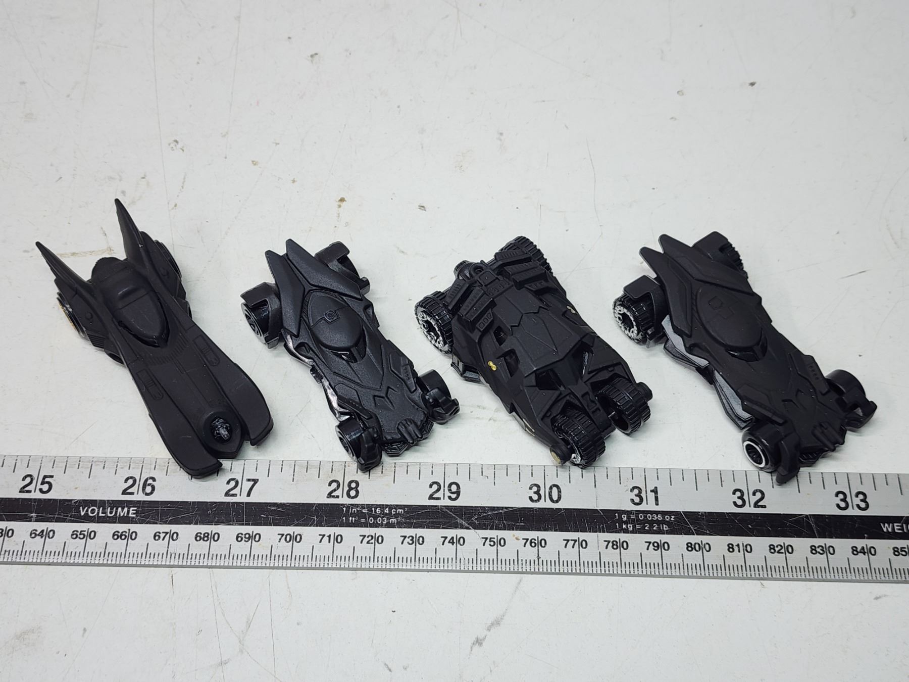Four small Batmobiles tracing evolution of design)