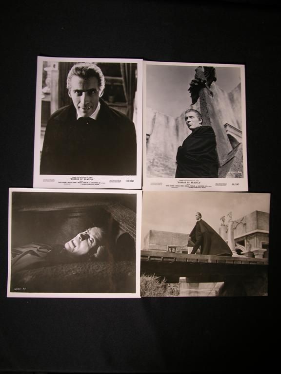 Set of four black and white stills from Hammer's Horror of Dracula. These depict Christopher Lee in a number of iconic poses. (8x10 each)