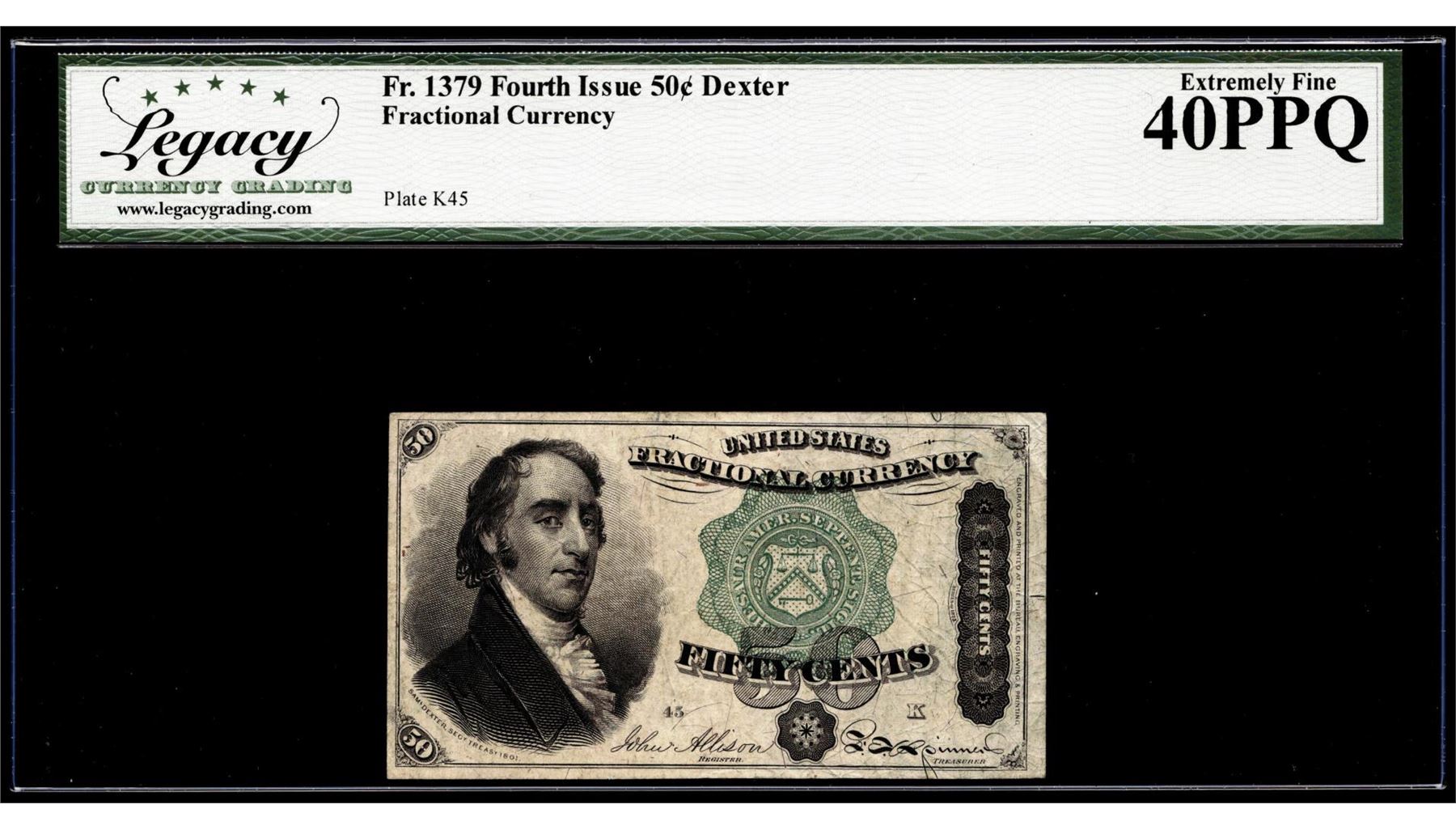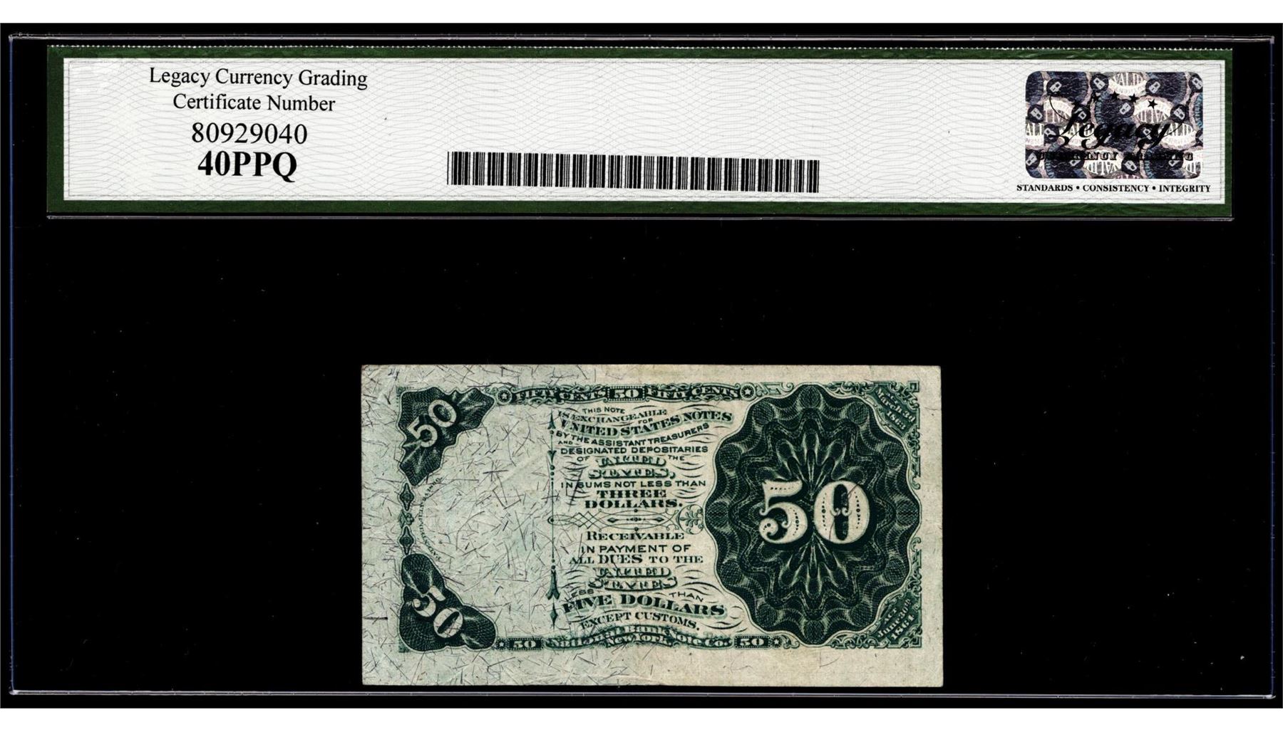 One Fourth Issue 50 Cents Fractional Currency Note Fr.1379 Legacy Extremely Fine 40PPQ. Legacy Graded.