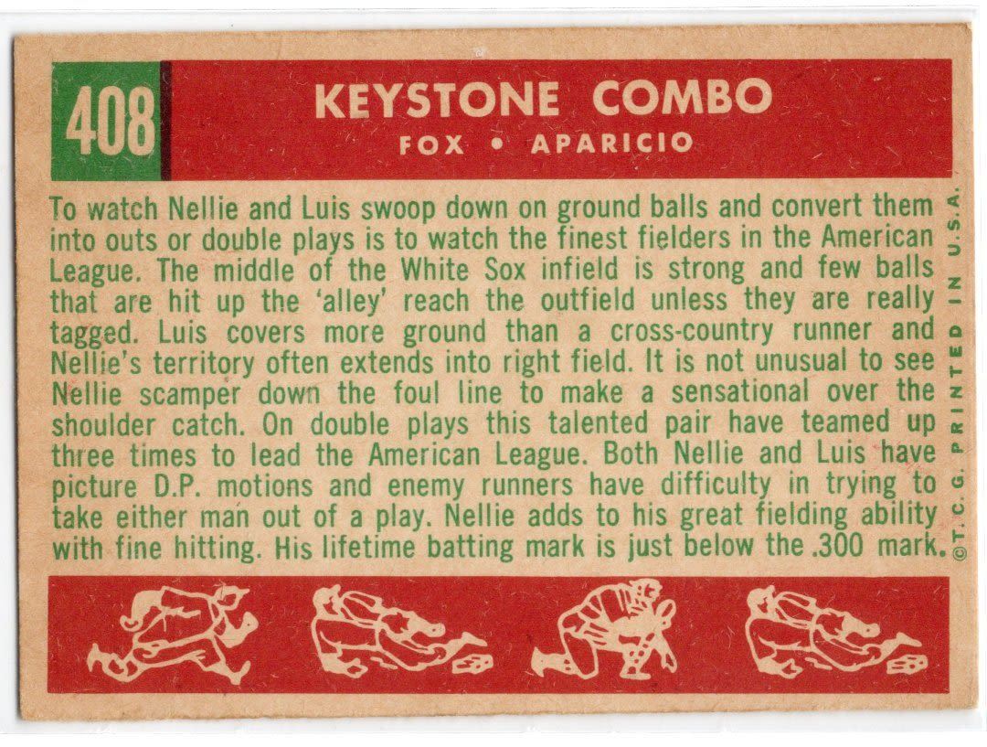 Fox & Aparicio 1959 Topps Keystone Combo Card number 408