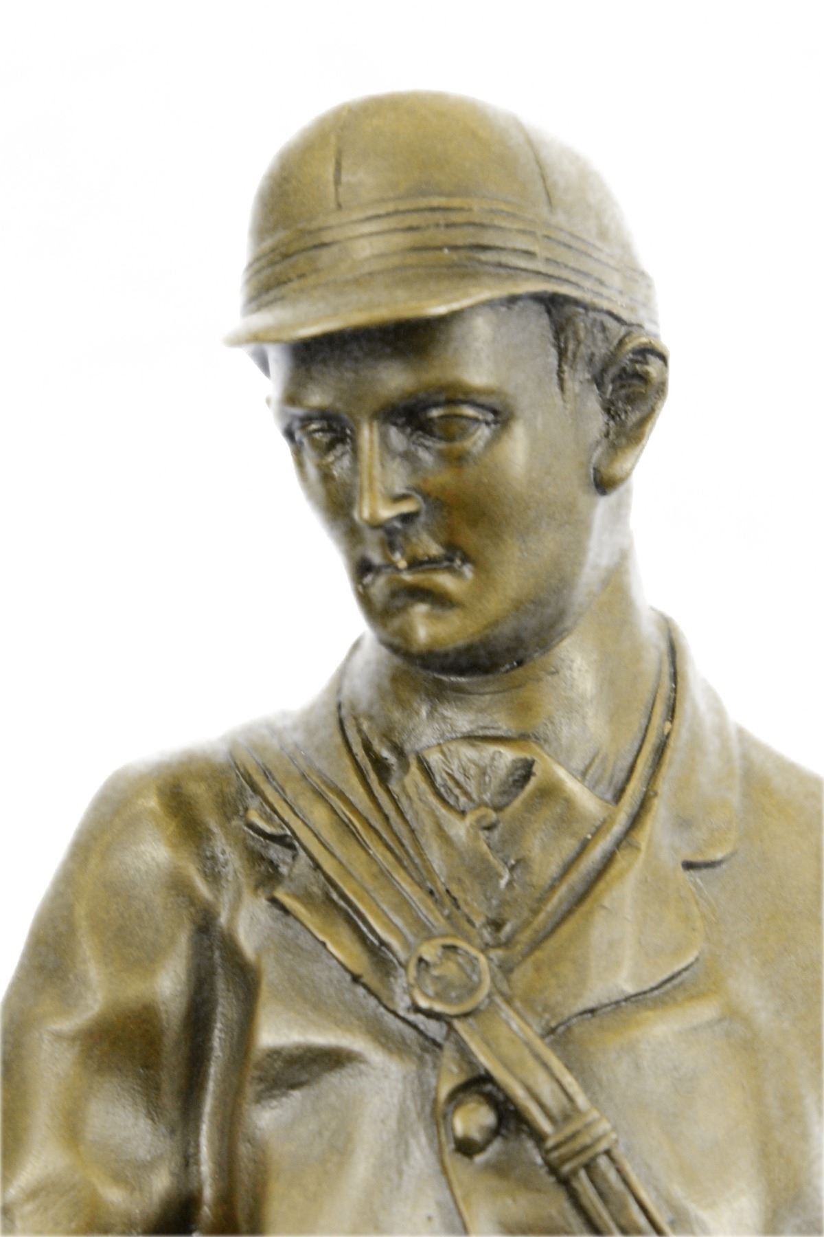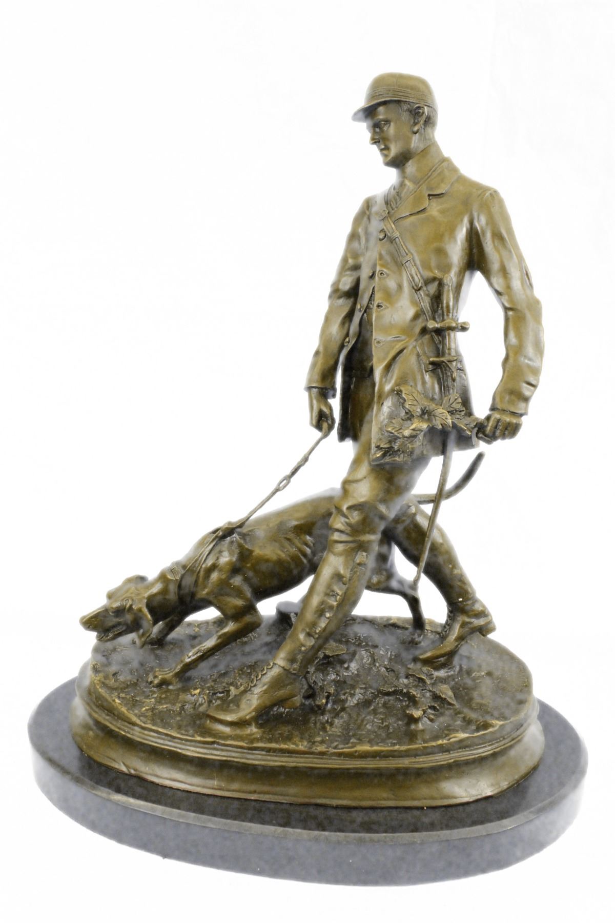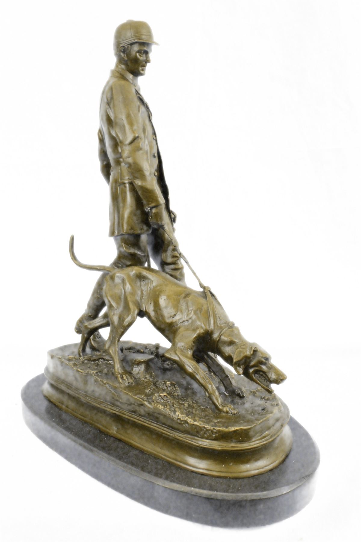 Hunting Is The Practice Of Pursuing Any Living Thing, Usually Wildlife, For Food, Recreation, Or Trade. In Present-Day Use, The Term Refers To Lawful Hunting, As Distinguished From Poaching, Which Is The Killing, Trapping Or Capture Of The Hunted Species Contrary To Applicable Law. Although Various Animals Have Been Used To Aid The Hunter, None Has Been As Important As The Dog. The Domestication Of The Dog Has Led To A Symbiotic Relationship In Which The Dog Has Lost Its Evolutionary Independence From Humans In Exchange For Support. Dogs Today Are Used To Find, Chase, And Retrieve Game, And Sometimes To Kill It. Hunting Dogs Allow Humans To Pursue And Kill Prey That Would Otherwise Be Very Difficult Or Dangerous To Hunt. The Species Which Are Hunted Are Referred To As Game, And Are Usually Mammals And Migratory Or Non-Migratory Game Birds. This Sculpture Of A Man And His Dog In The Hunt For Some Prey Will Go Perfect In A Hunters Or As A Gift. This Sculpture Was Cast Using The Lost Wax Method And Has A Brown Patina. Bronze dimensions with marble base: Height 19 X Width 16 inches. Weight: 32 lbs.Please Note: This is a reproduction bronze sculpture from the original molded and signed. This featured bronze sculpture is a recast after the original, and has been done recently. This 100% bronze sculpture is an abstract piece certain to be a conversation piece.Please Note: This is a reproduction bronze sculpture from the original molded and signed. This featured bronze sculpture is a recast after the original, and has been done recently. This 100% bronze sculpture is an abstract piece certain to be a conversation piece.