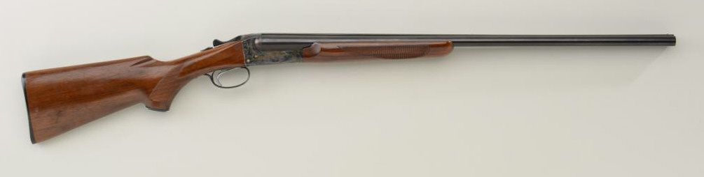 Fox Model B SxS shotgun, 20 gauge, 2-3/4” chambers, 28” barrels, black finish to barrels and case hardened receiver, checkered wood stocks, single trigger, #8902293. This gun is in overall fine to excellent condition showing the majority of its original blue and case colors; bores should clean to fine, crisp actions, sharp markings, fine wood stocks. Est.: $250-$500.