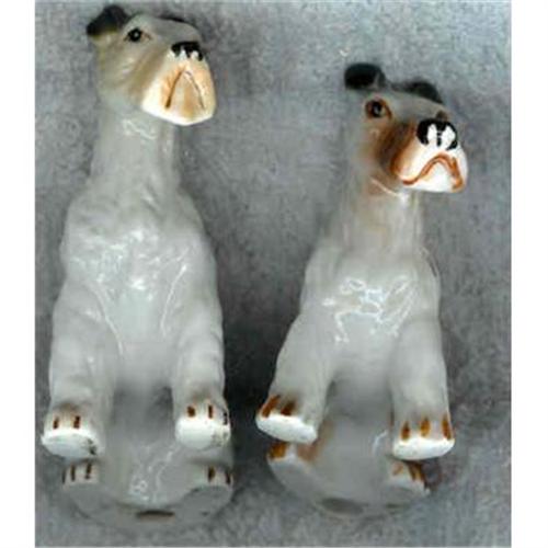 Two very fine porcelain dog figurines. The Male Fox Terrier is 3.7/8" tall and the female Fox Terrier is 2.3/4" tall. English circa 1930. Excellent condition. No makers mark.