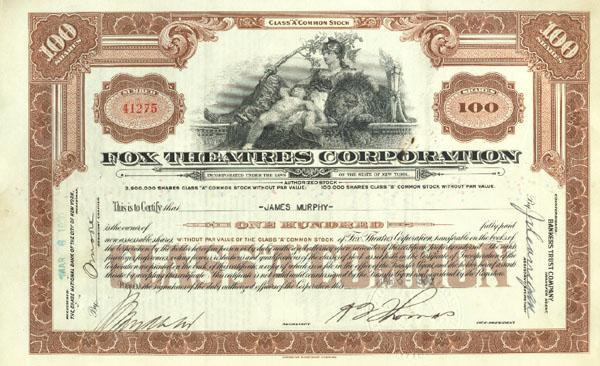 1930, New York. Stock certificate for 100 shares. Brown/Black. Vignette of allegorical lady and child at top center. Very fine.