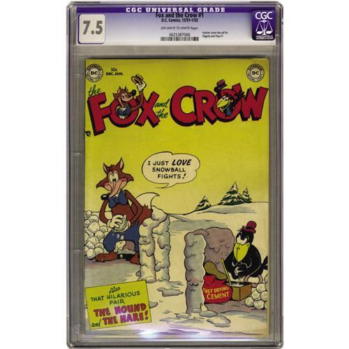 <B>Fox and the Crow #1 (DC, 1951) CGC VF- 7.5 Off-white to white pages.</B></I> DC issues from the early 1950s are generally tough finds in high grade, and DC "funny" books seem even tougher to acquire. This is just about as nice a copy as you'll find; CGC's census currently lists just one copy with a higher grade. The inside cover has an ad for <B>Flippity and Flop</B></I> #1. Overstreet 2006 VF 8.0 value = $719. CGC census 03/06: 2 in 7.5, 1 higher.
