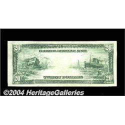 Fr. 1000 $20 1914 Federal Reserve Note Choice New. The census for this note is about a dozen and a half. This is the fourth example that we have handled. This note's been off the market since the June 1980 Bowers and Ruddy sale. <BR><BR><B>Important notice:</B> Heritage usually auctions material at the rate of 200-250 lots per hour. On some occasions eBay Live bid software or the Internet may not be able to keep up with the pace of the auction. We recommend placing a realistic absentee bid now as insurance to avoid disappointment. Occasionally the auctioneer may eliminate or reject an eBay Live bid, and the auctioneer may also reopen a lot after the close of the eBay live bidding (usually because we missed an audience bid), and may reject your bid even if it shows you as the winning bidder. By bidding via eBay Live, you agree that Heritage may award the lot to another bidder at its sole discretion under the circumstances described above or any other reasonable circumstances. Since eBay bids are not shown to us until we open the lot on the floor, we treat those bids just like floor bids. In most cases the floor responds before the eBay bid is presented to us, due to Internet lag time, so for consistency we have made it a policy that floor bids are always considered first over tie eBay live bids. Also please note that all Heritage lots purchased through eBay Live carry a 20% Buyer's Premium. Please make sure you read the Terms and Conditions before you bid. <BR><BR><B>IMPORTANT ANNOUNCEMENT ABOUT RESERVES:</B> Heritage now divulges all reserves on its web site 7 days before every auction. If you want to know whether the reserve on this lot has been met, and if not, what the reserve amount is, please visit this lot page on the HeritageCoin.com web site, or email: bid@HeritageGalleries.com