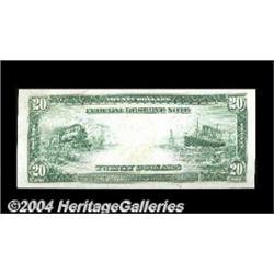 Fr. 1003 $20 1914 Federal Reserve Note Choice New. This is the sixth example we've sold of this Kansas City number. It's a most attractive note, with strong color and excellent paper surfaces. <BR><BR><B>Important notice:</B> Heritage usually auctions material at the rate of 200-250 lots per hour. On some occasions eBay Live bid software or the Internet may not be able to keep up with the pace of the auction. We recommend placing a realistic absentee bid now as insurance to avoid disappointment. Occasionally the auctioneer may eliminate or reject an eBay Live bid, and the auctioneer may also reopen a lot after the close of the eBay live bidding (usually because we missed an audience bid), and may reject your bid even if it shows you as the winning bidder. By bidding via eBay Live, you agree that Heritage may award the lot to another bidder at its sole discretion under the circumstances described above or any other reasonable circumstances. Since eBay bids are not shown to us until we open the lot on the floor, we treat those bids just like floor bids. In most cases the floor responds before the eBay bid is presented to us, due to Internet lag time, so for consistency we have made it a policy that floor bids are always considered first over tie eBay live bids. Also please note that all Heritage lots purchased through eBay Live carry a 20% Buyer's Premium. Please make sure you read the Terms and Conditions before you bid. <BR><BR><B>IMPORTANT ANNOUNCEMENT ABOUT RESERVES:</B> Heritage now divulges all reserves on its web site 7 days before every auction. If you want to know whether the reserve on this lot has been met, and if not, what the reserve amount is, please visit this lot page on the HeritageCoin.com web site, or email: bid@HeritageGalleries.com