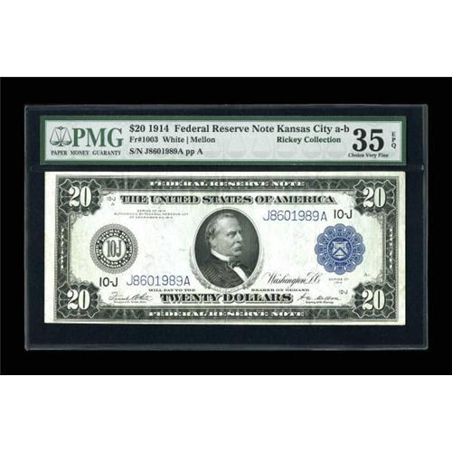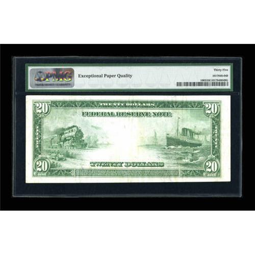 <B>Fr. 1003 $20 1914 Federal Reserve Note PMG Choice Very Fine 35 EPQ.</B></I> The paper is bright and very attractive for a moderately circulated issue.<BR><BR><b>Shipping:</b> Coins & Currency (<a target="_blank" href="http://www.heritageauctions.com/common/shipping.php">view shipping information</a>)